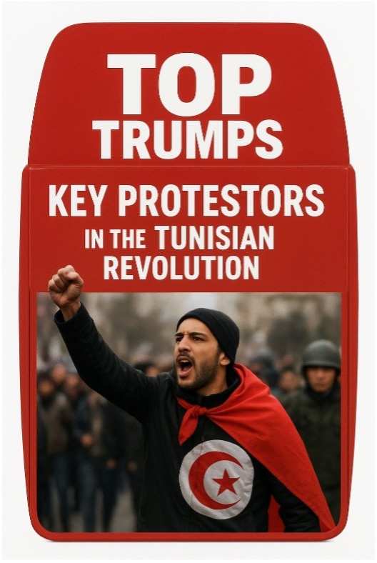 "Some of the most outspoken critics of the Ben Ali regime are provided below. Divide all or some of these names between the members of the class. Each student should conduct research on their allocated characters to produce a set of ‘Top Trumps’ cards. These cards will be collected in and turned into a full playing deck (or several decks, depending upon the size of the class).